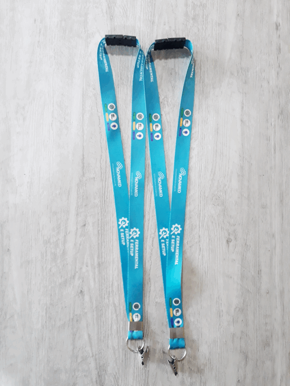 Cordão para crachá com impressão sublimatica 20mm. Cordão com acabamento em argola e jacaré (para outros acabamentos, entrar em contato).